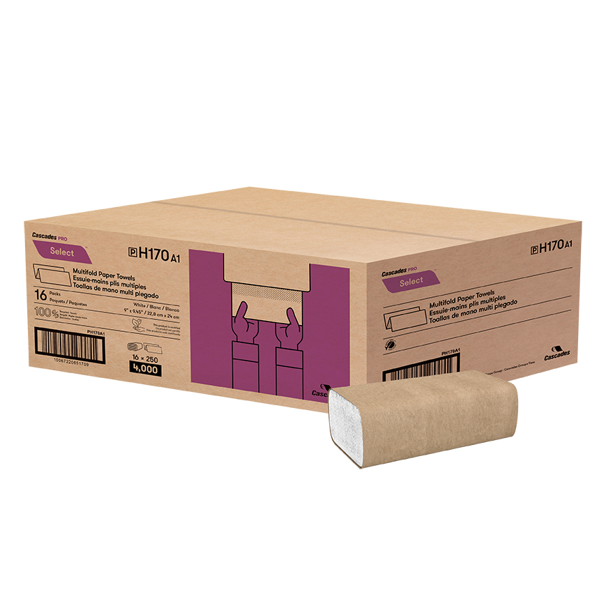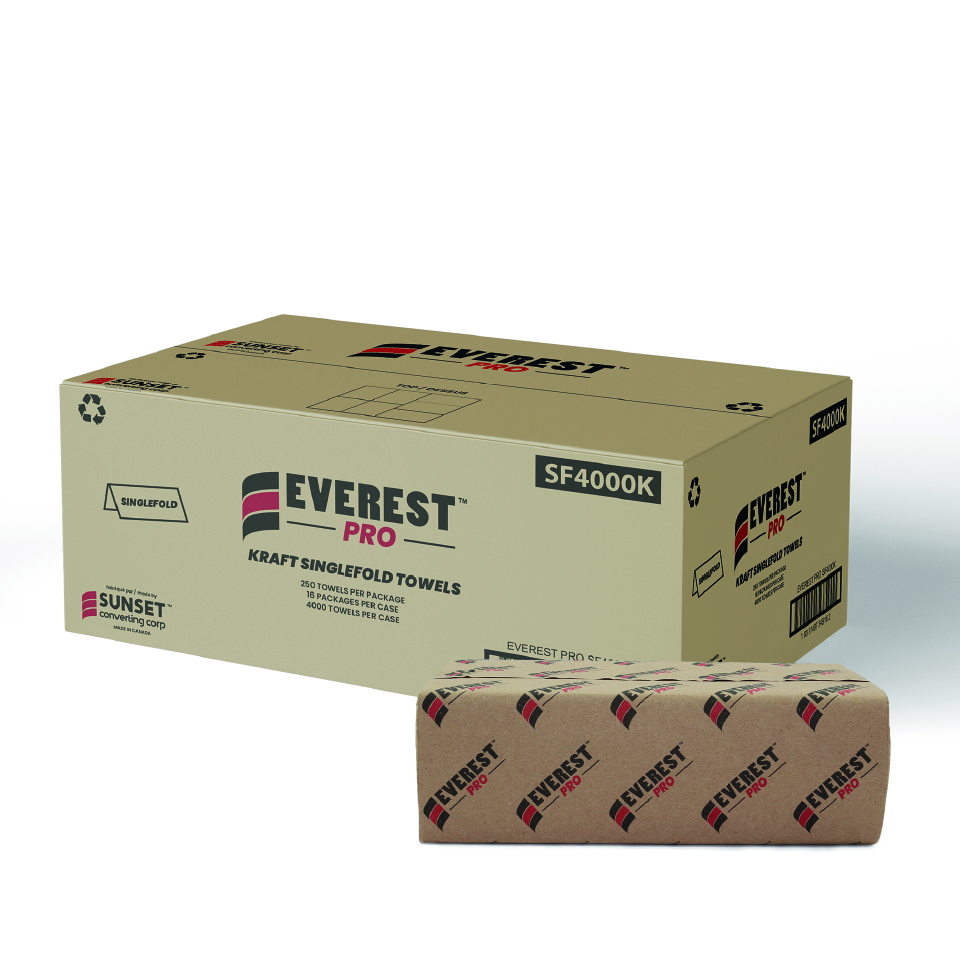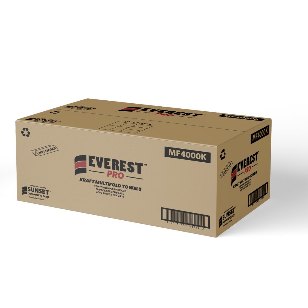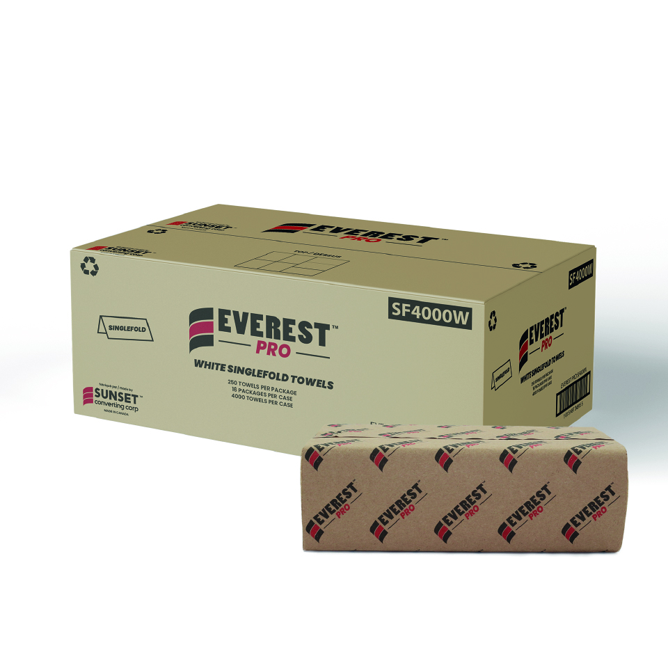 Everest Pro's quality white multifold towels provide superior quality 1-ply performance. With 250 sheets per pack and 16 packs per case made from recycled paper, this product is ideal for use across all markets, including homes, restaurants, retailers, office buildings, and hotels. Made in Canada.