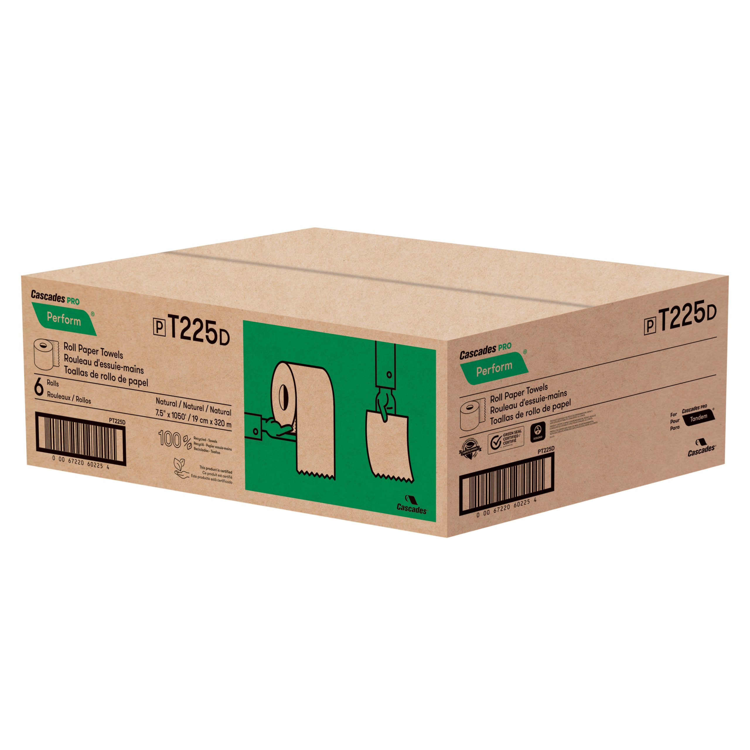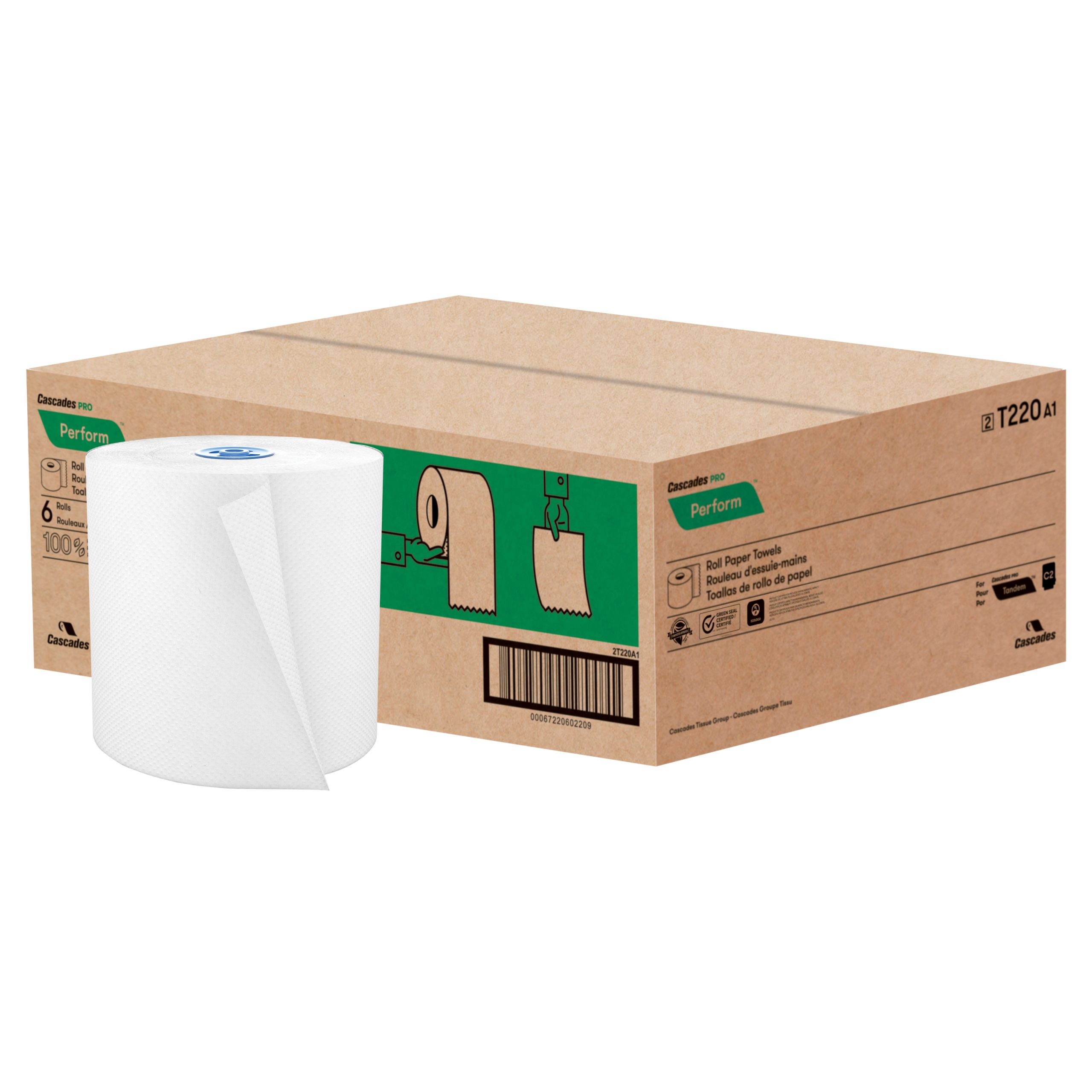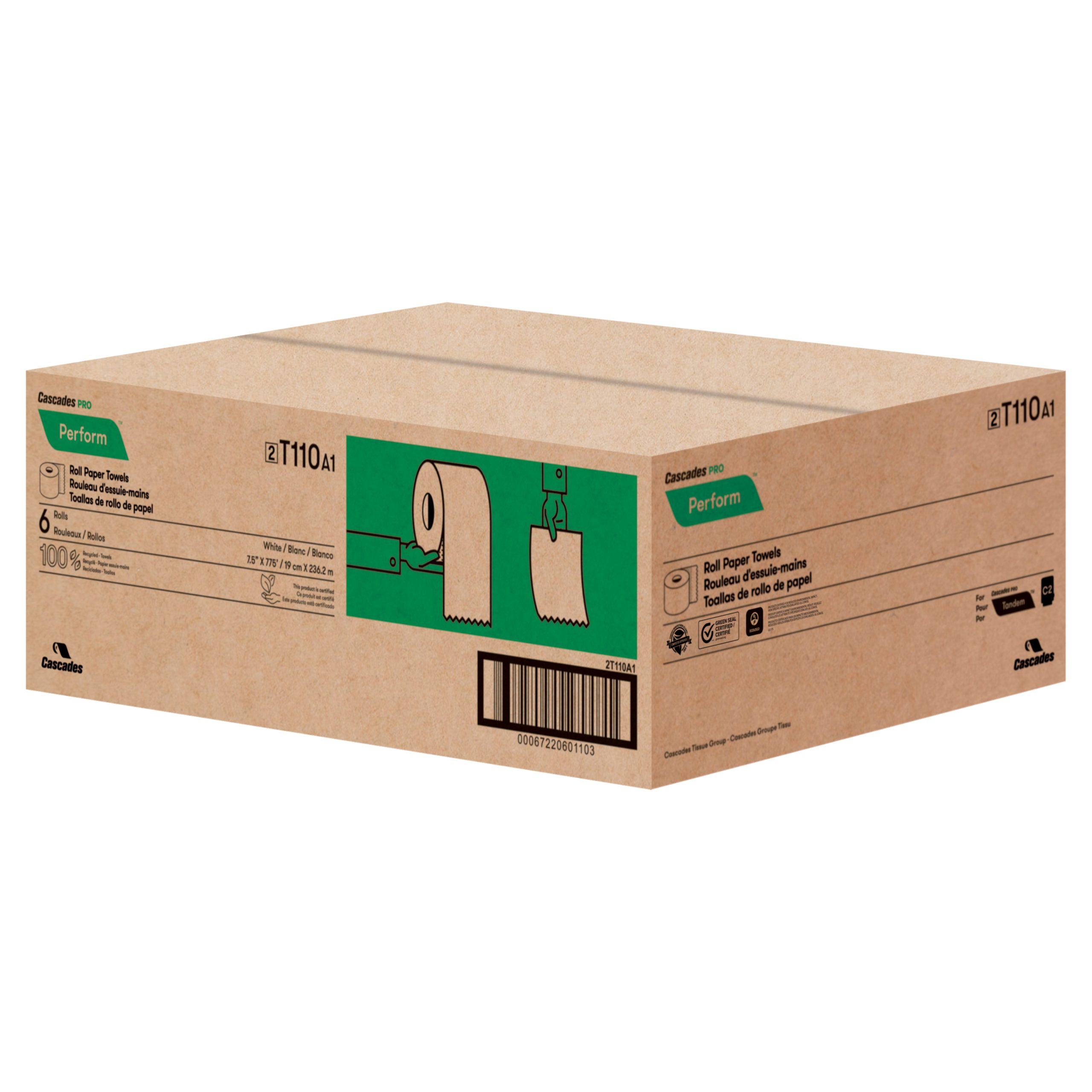 For the Tandem® dispenser. Made from 100% recycled fibre, including 50% post-consumer material, these rolls meets EPA sustainability standards. Ideal for hygienic hand drying, these towels are perfect for restrooms in educational, retail, industrial and foodservice establishments. Certified by Green Seal®, UL-ECOLOGO and Green-E. For clean restrooms that reflect a respect for the environment in all sectors, from educational establishments to foodservice areas. Suitable for industrial and municipal composting facilities, but not for home composting.