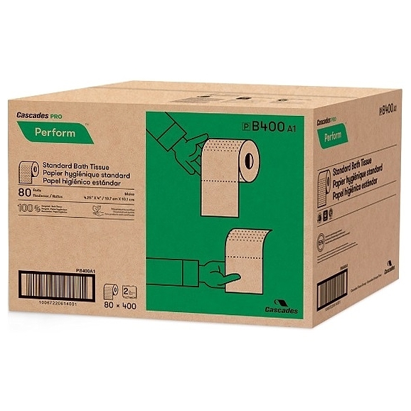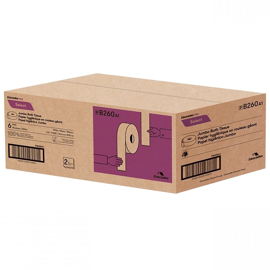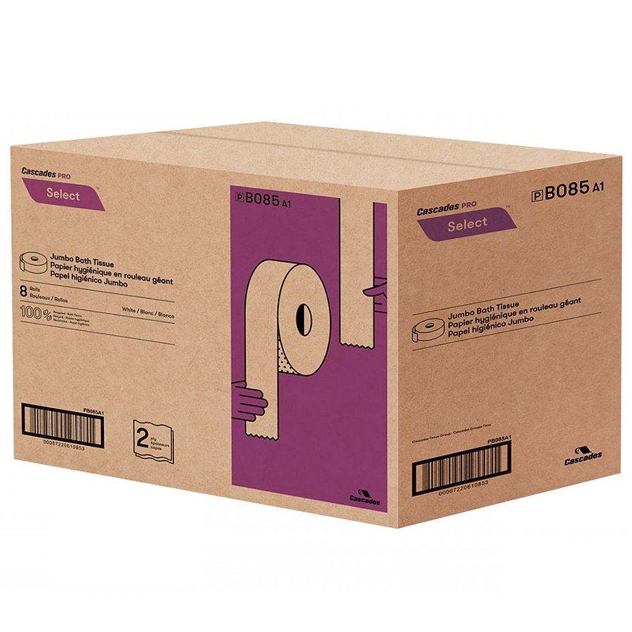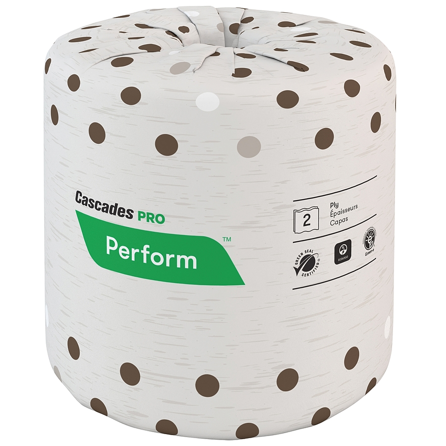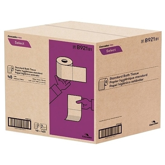 The economical choice, Cascades PRO Select® standard toilet paper provides reliable performance at a low cost. Soft and gentle on skin, this eco-friendly product is made from 100% recycled fiber and offers the ideal choice for those needing a strong and absorbent bathroom tissue. This product is biodegradable and safe for plumbing and septic systems.
