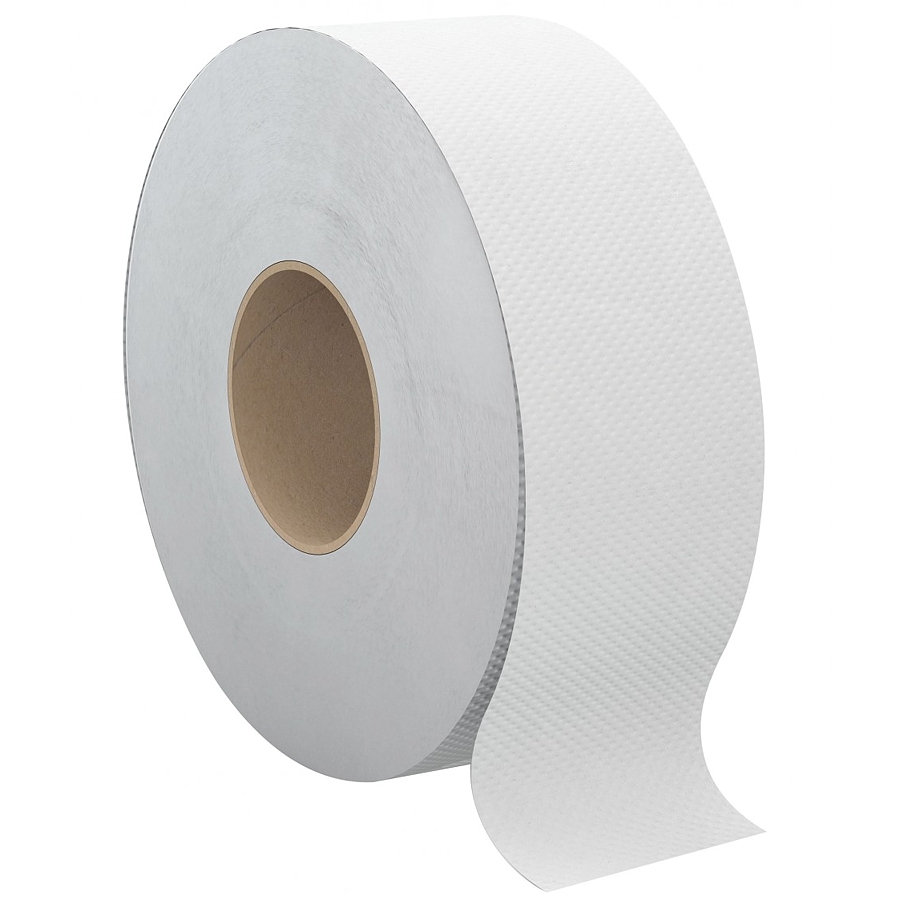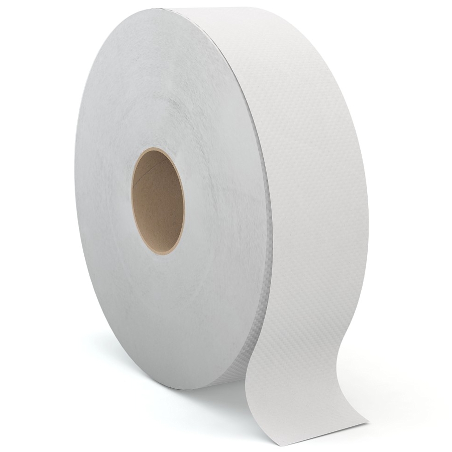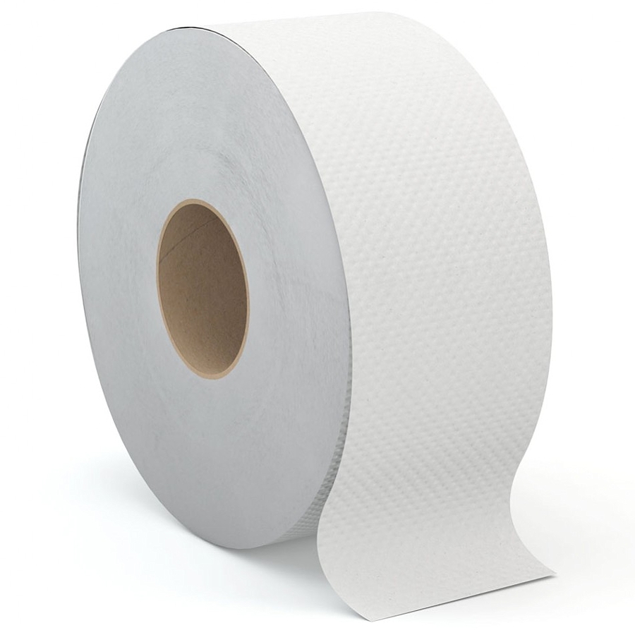 A Cost-saving jumbo toilet paper delivers 900 feet of tissue guaranteeing fewer refills and run-outs. Ideal for restrooms in public facilities. This long-lasting toilet paper is strong yet soft. Made from 100% recycled fiber, this 2-ply tissue is not only economical but environmentally friendly as well. This product is biodegradable and safe for plumbing and septic systems.