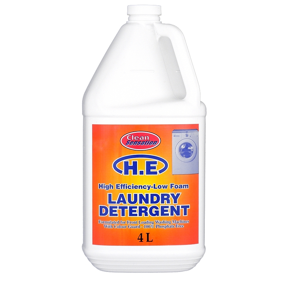 An enhanced 'HE' detergent. A low foam, high efficiency detergent, as stipulated by the manufactures of Front-Loading washing machines. The combination of active enzymes and added specialty surfactants off enhanced removal of protein based stains like perspiration, blood etc.