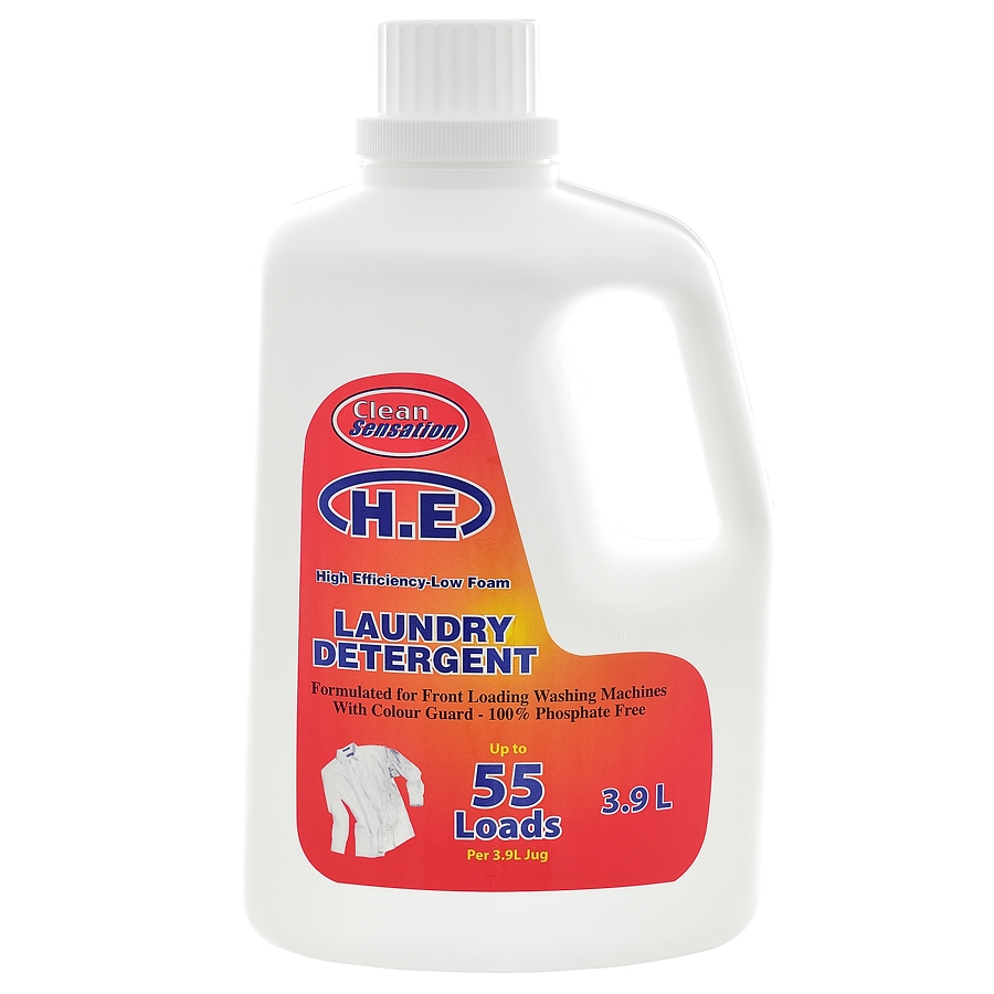 Low foam, High Efficiency detergent, as stipulated by the manufactures of Front-Loading washing machines. With optical brighteners, degreasers, soil anti-redeposition agents, water softeners and colour guard. Phosphate free. NEW: available in 3.9L with easy pour spout & lid measuring cup.